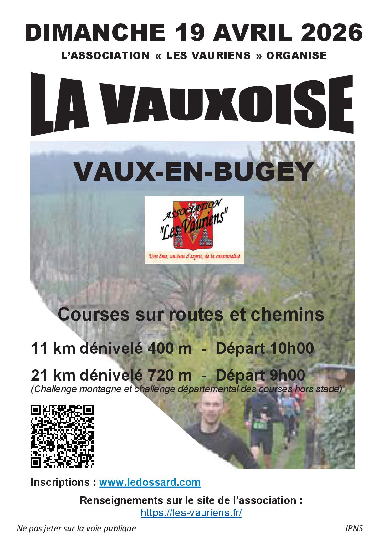 L'association Les Vauriens de Vaux-en-Bugey organise les 2 trails de La Vauxoise le dimanche 19 avril 2026 sur les chemins de la commune.